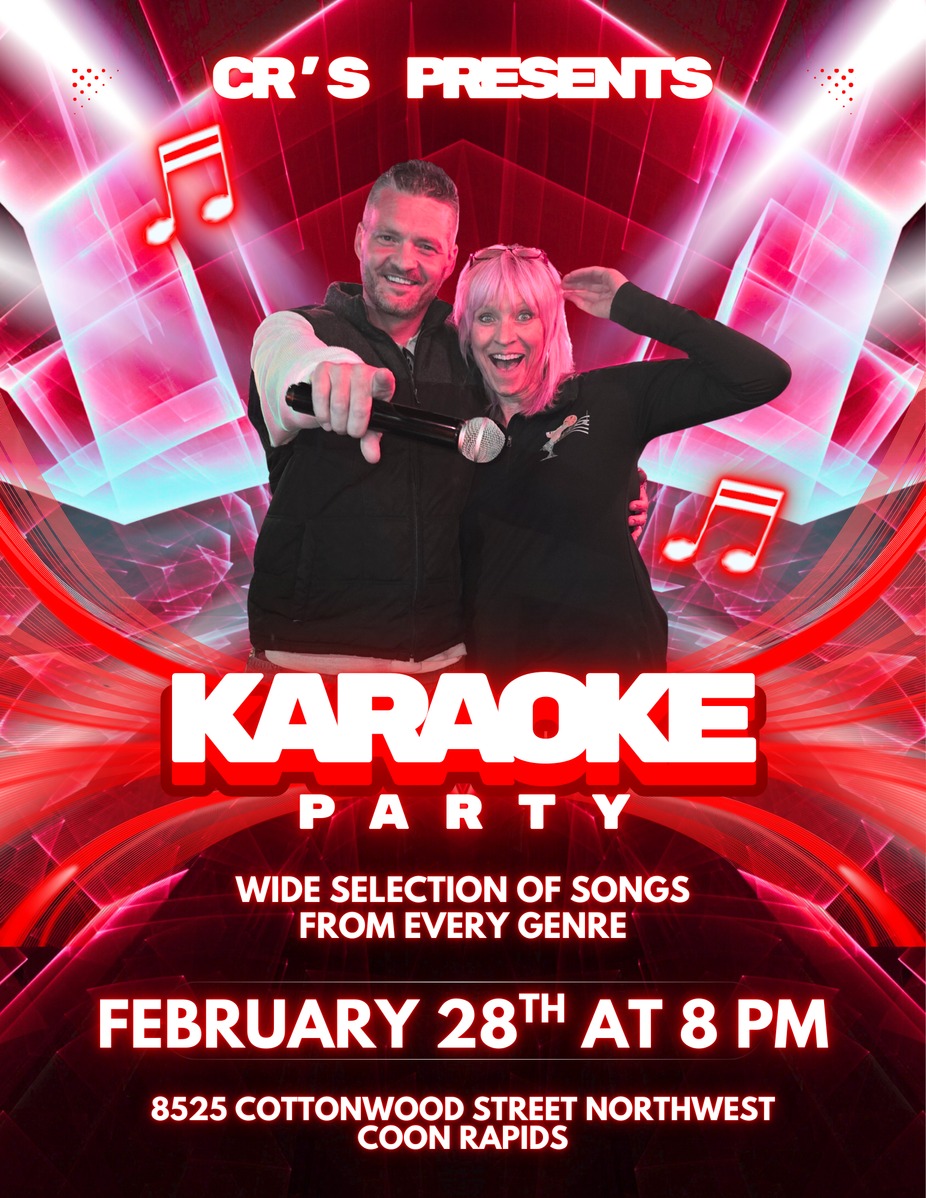 Get ready, Coon Rapids! CR's Sports Bar & Carbone's Pizzeria is bringing the heat on February 28th with our Karaoke Party! Get your Happy Hour fix till 6pm, then let Brandon Mau guide you to stardom from 8-11pm! Don't miss out, join us for a night filled with pizza, pints, and powerhouse performances!