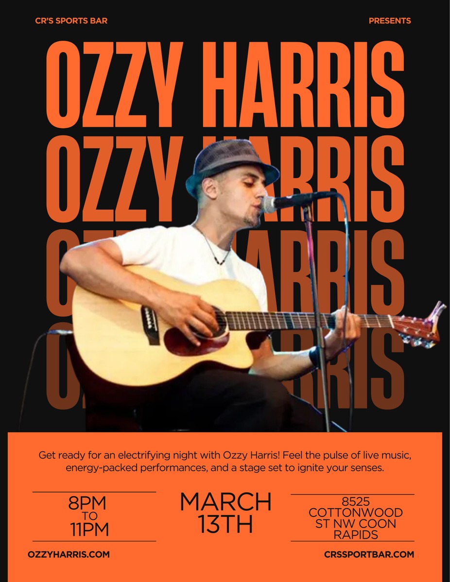 Come on in for a great night with the one and only Ozzy Harris. Ozzy is a self-styled vocalist and guitarist with a long history of musical and performance experience. He has been entertaining the Twin Cities since 2005 with his versatile voice and clever renditions of everyone's favorite songs.